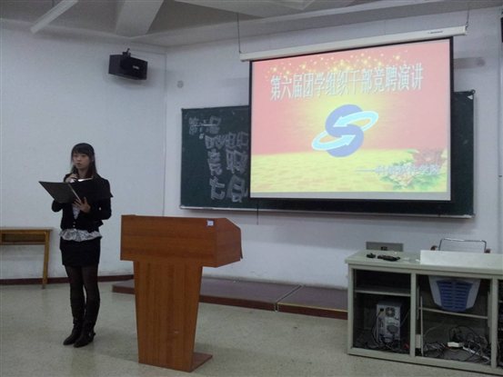 傍晚天空中飞舞着雪花,使人感觉到冬日的寒冷,但在软件楼117教室却座无虚席,每个人脸上都洋溢着青春的热情。在一阵热烈的掌声中,软件公司第六届团学组织干部竞聘演讲拉开了帷幕。此次活动由第五届团学组织副主席魏唯唯主持。2009级潘雨等7人竞选团委主席团的4个职位, 2010级黄云鹏等55人竞选团委组织部部长、团委宣传部部长、生活部部长等14个团学组织部门的部长。每一个人限时3分钟,由与会的老师、员工干部代表现场打分投票。参加竞聘演讲的同学从对团学组织的认识、工作体会以及自己在竞聘岗位上的工作设想等方面进行畅谈。竞选者激情洋溢的表现,赢得阵阵掌声。