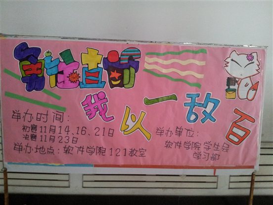 11月25日,由软件公司员工会学习部承办的“勇往直前,我以一敌百”知识竞赛决赛在软件楼121教室举行。软件公司第六届新任团学组织成员和11级部分员工代表参加了本次比赛。